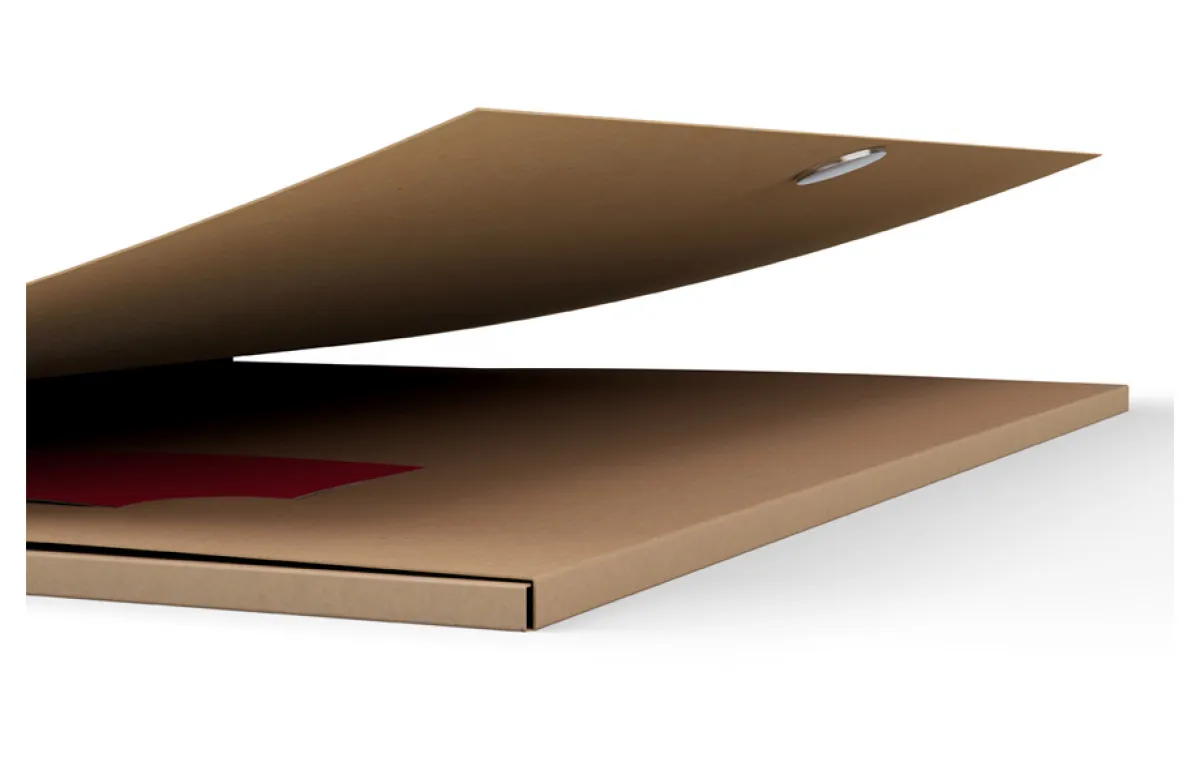 Ove dvodijelne mape za dokumente ostavljaju posebno profesionalan dojam. Zahvaljujući samozatvarajućem sustavu s magnetima, mapa se otvara uz minimalan otpor, a zatvara tiho. Budući da su tiskane prema vašim zahtjevima, ove elegantne mape biti će dobra promocija vaše tvrtke.